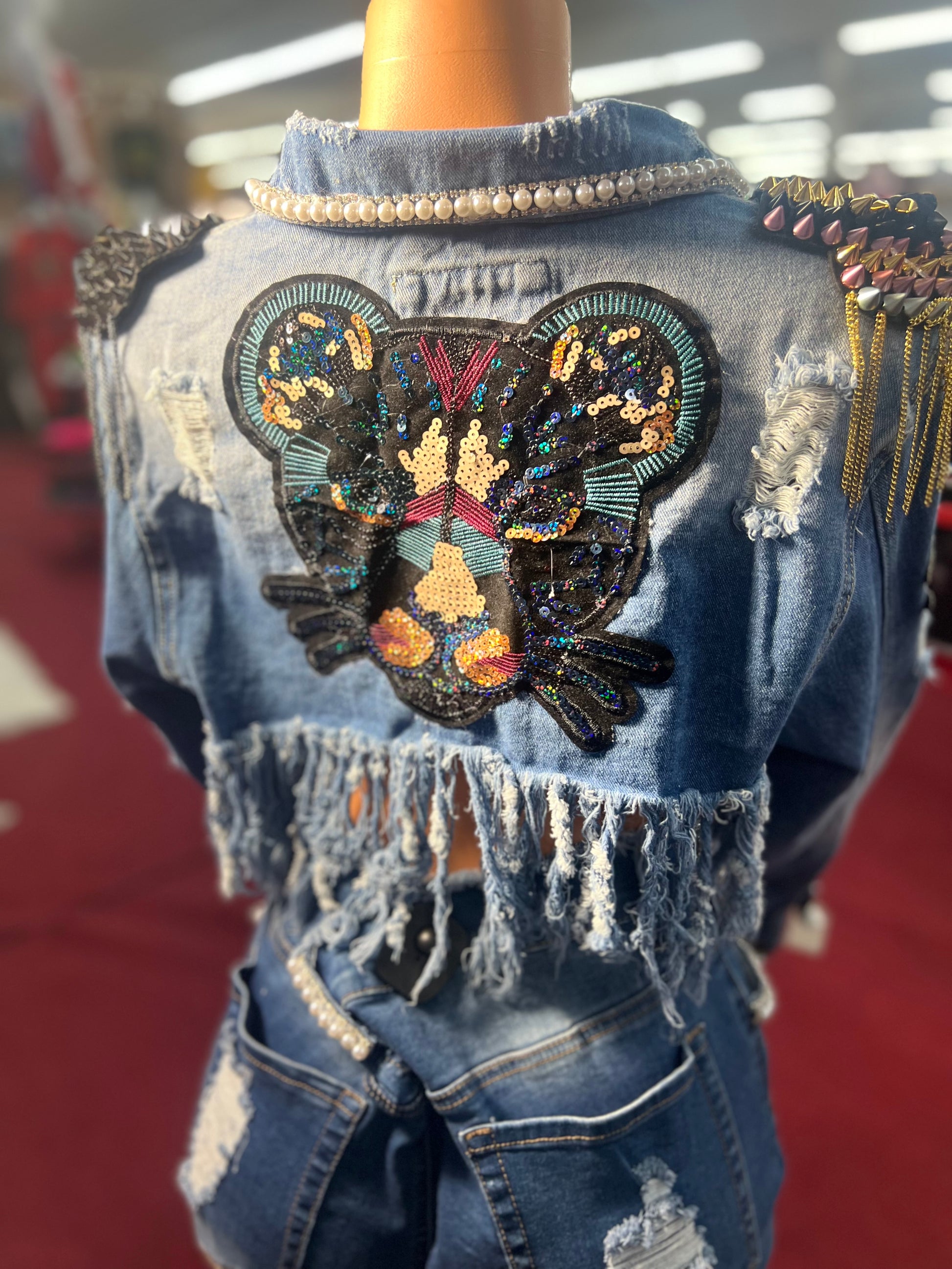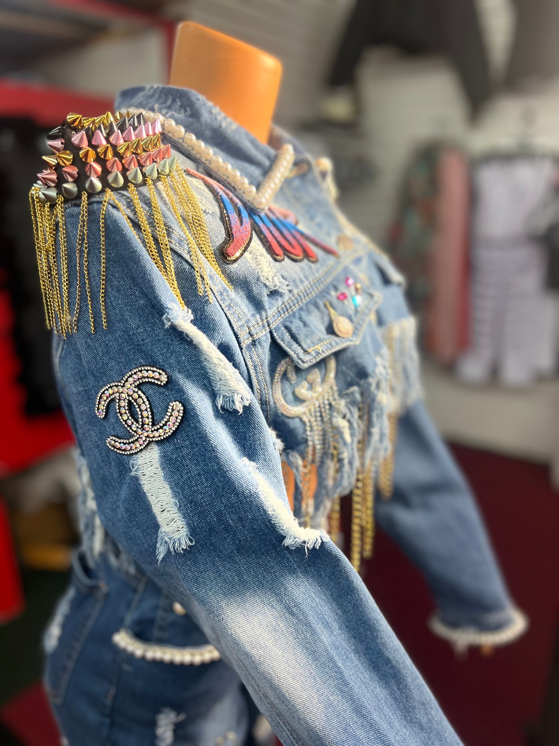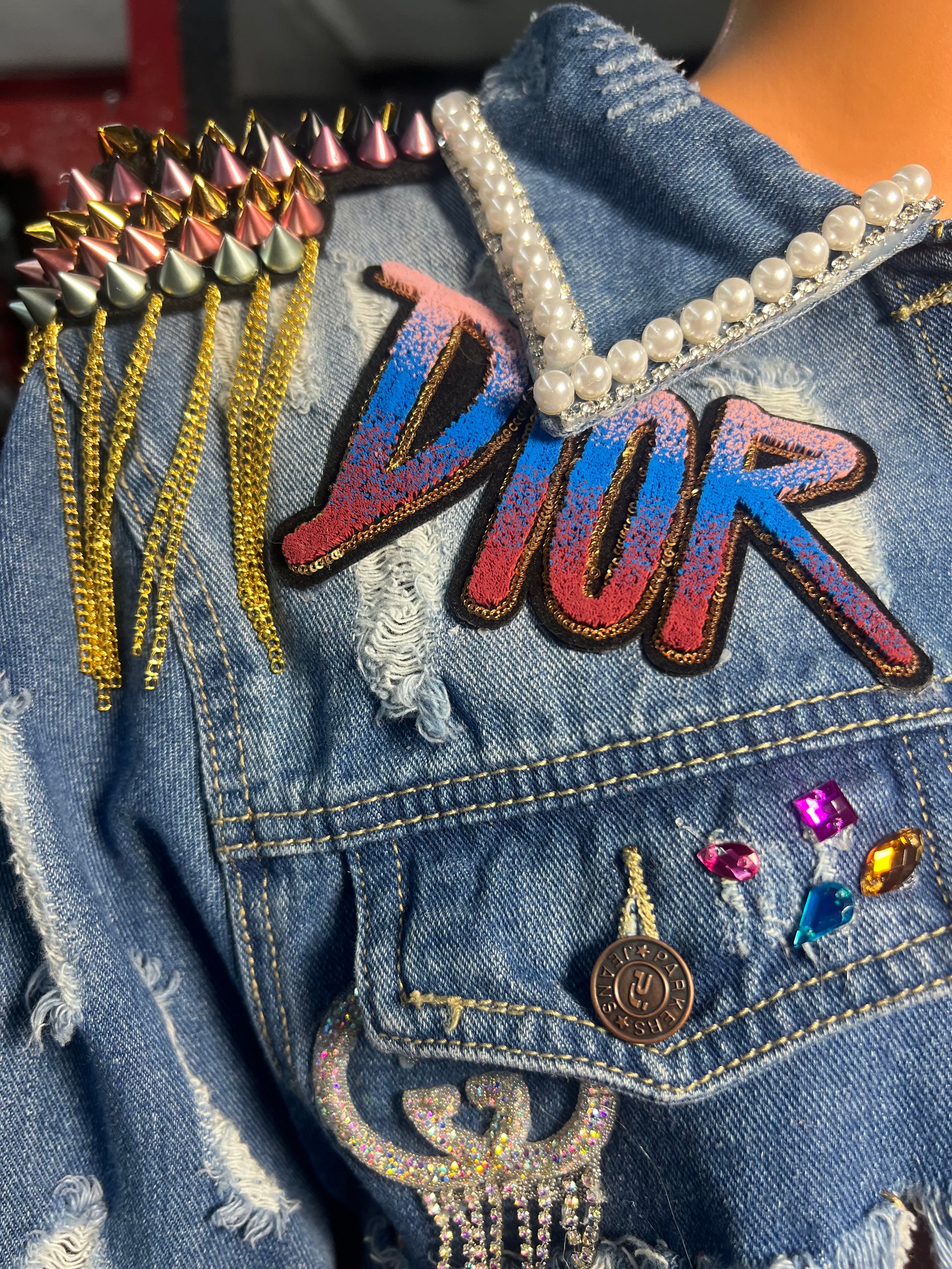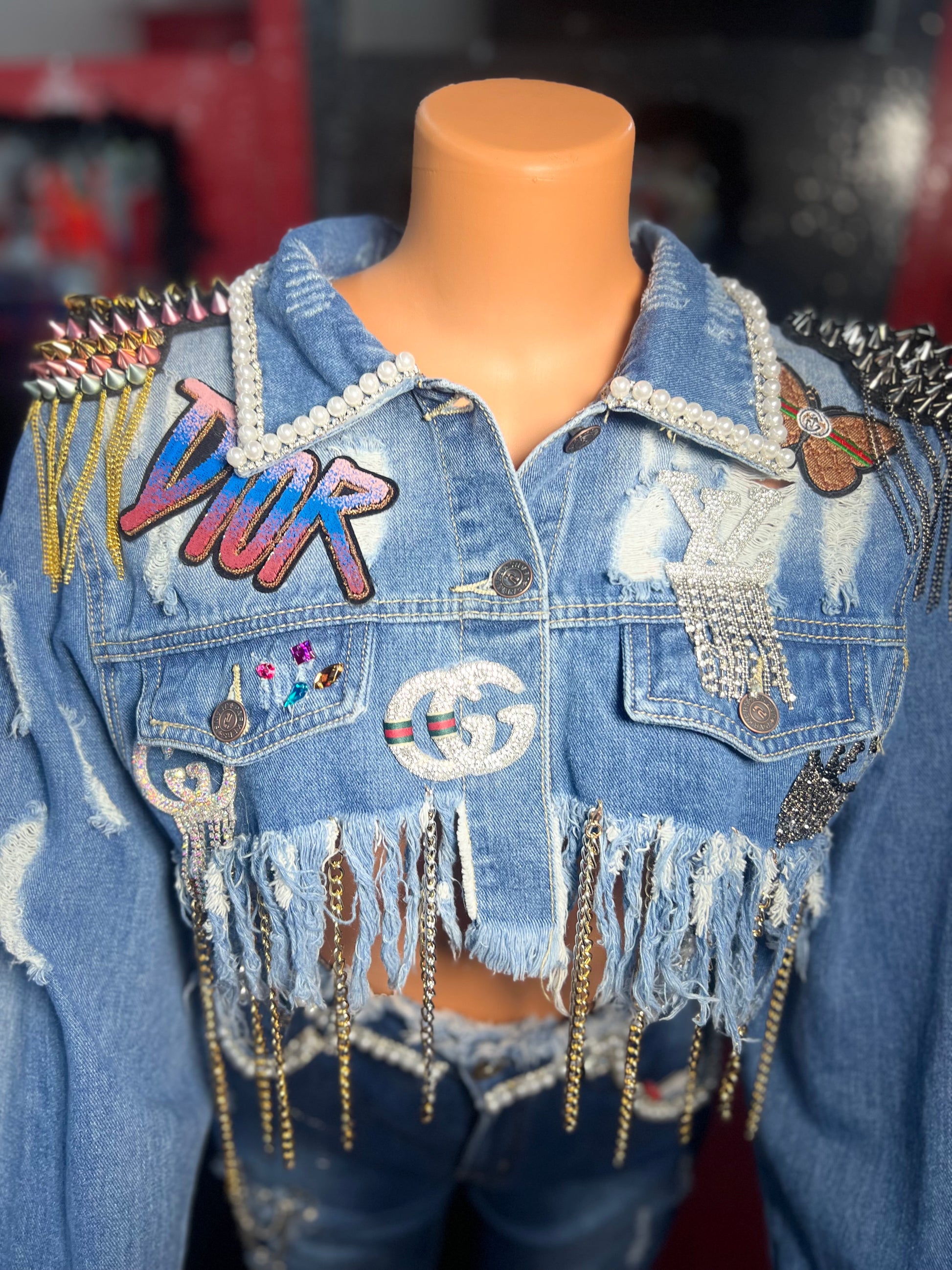 Unique Denim Patched LUX Jacket ! Custom to fit all sizes, all orders may have different parches upon availability & creative eye. NO jacket is exactly the same to Keep its “One of a kind” uniqueness!